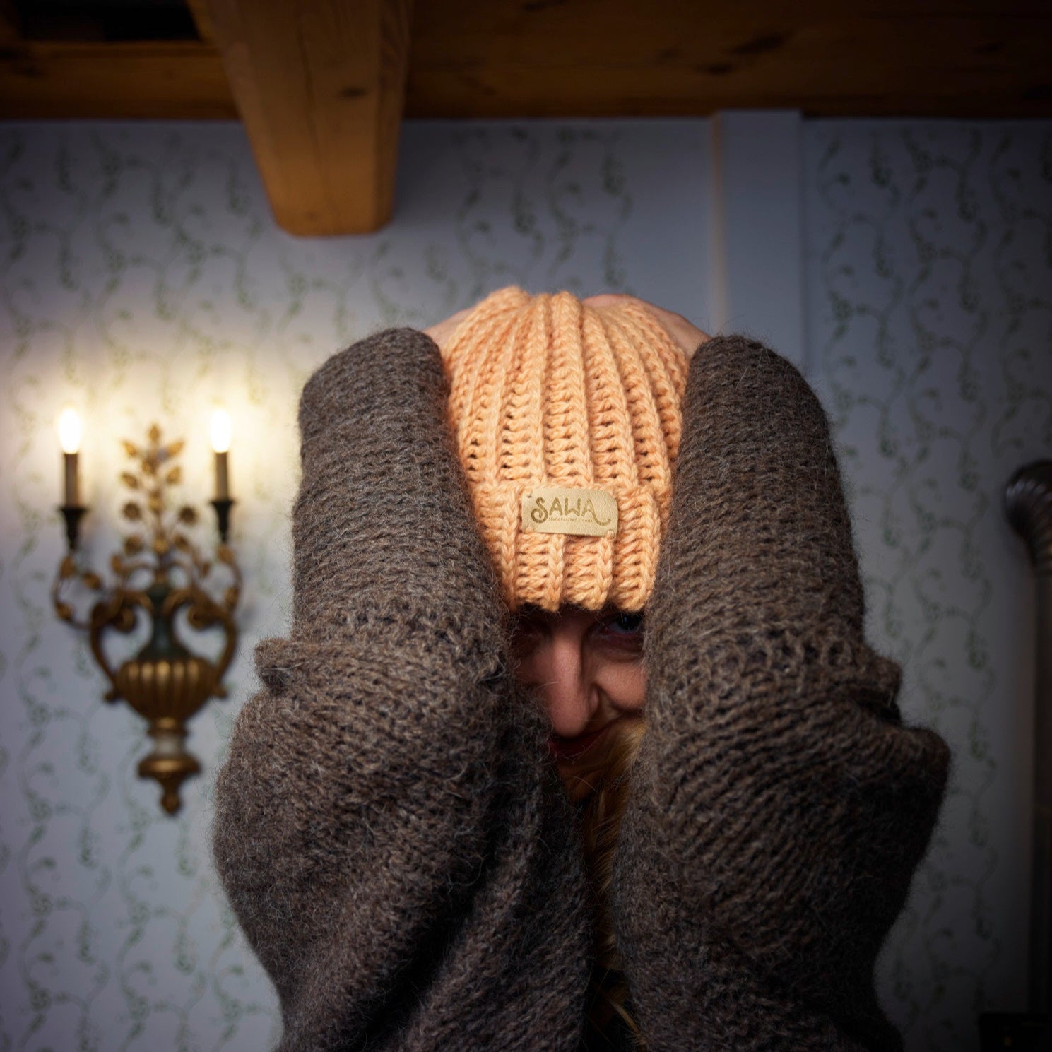 Handgemachte Haube aus 100 % Baby-Alpaka